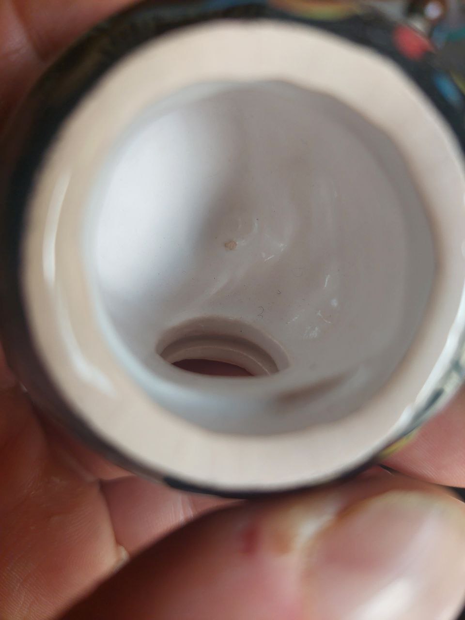 Im Inneren des Kräuterkopfes befindet sich ein kleines Glasurloch wie es auf einem der Bilder ersichtlich ist. Dies hat keinerlei Einfluss auf die Funktionalität und ist bei guter, regelmäßiger Reinigung unproblematisch. Diese Besonderheit wurde bereits im Preis berücksichtigt.