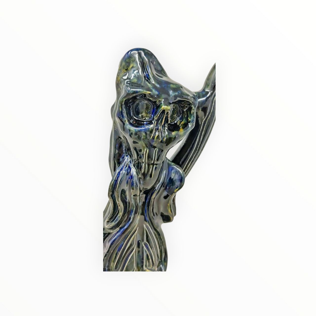 Glänzend, majestätisch, einzigartig: Glen erstrahlt in goldenem Blau und bringt königliche Eleganz in die Axine-Serie. Kunstvoll glasiert, ein Totenkopf voller Stil und Charakter – perfekt für Sammler, die das Außergewöhnliche lieben.