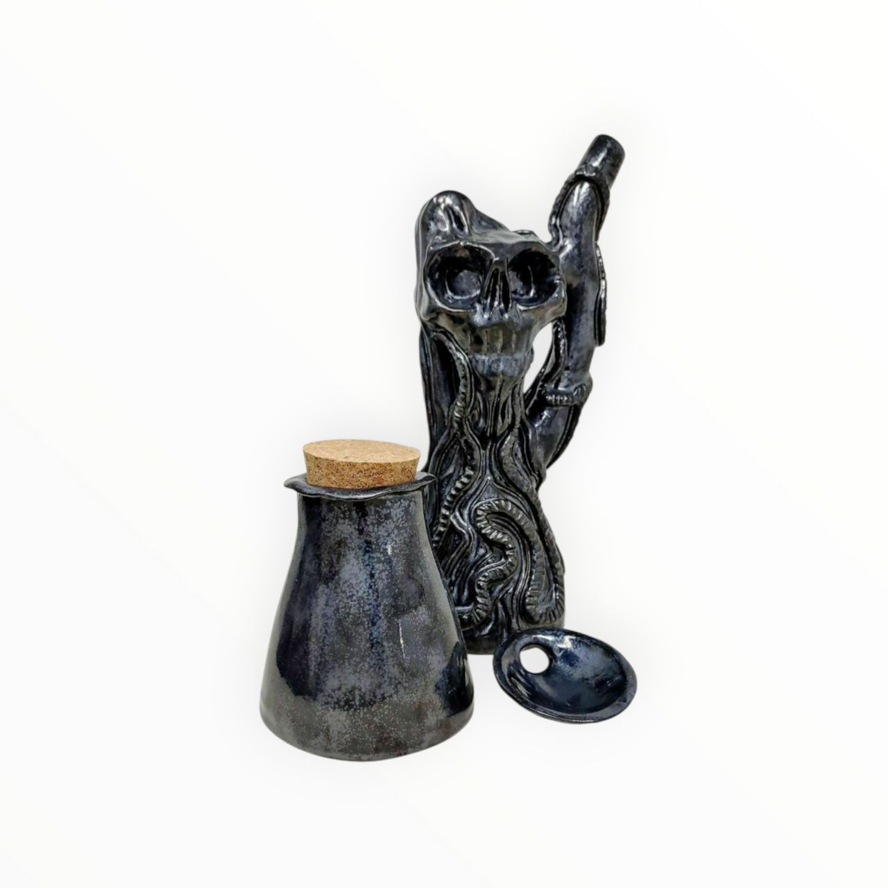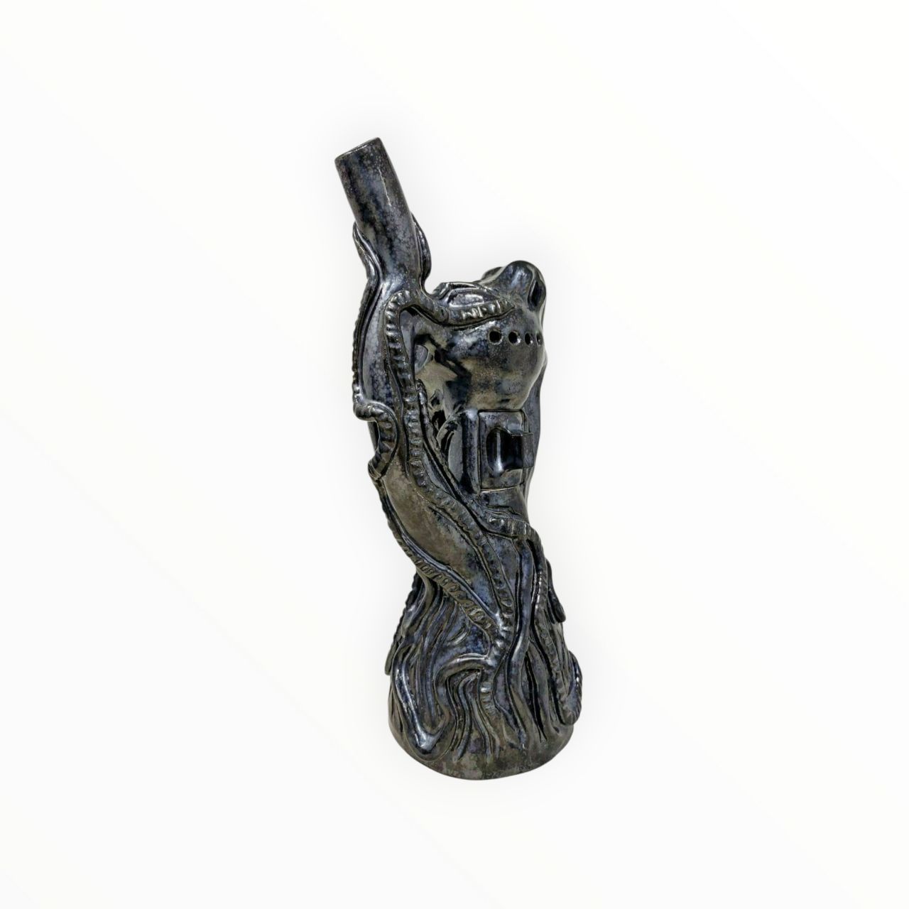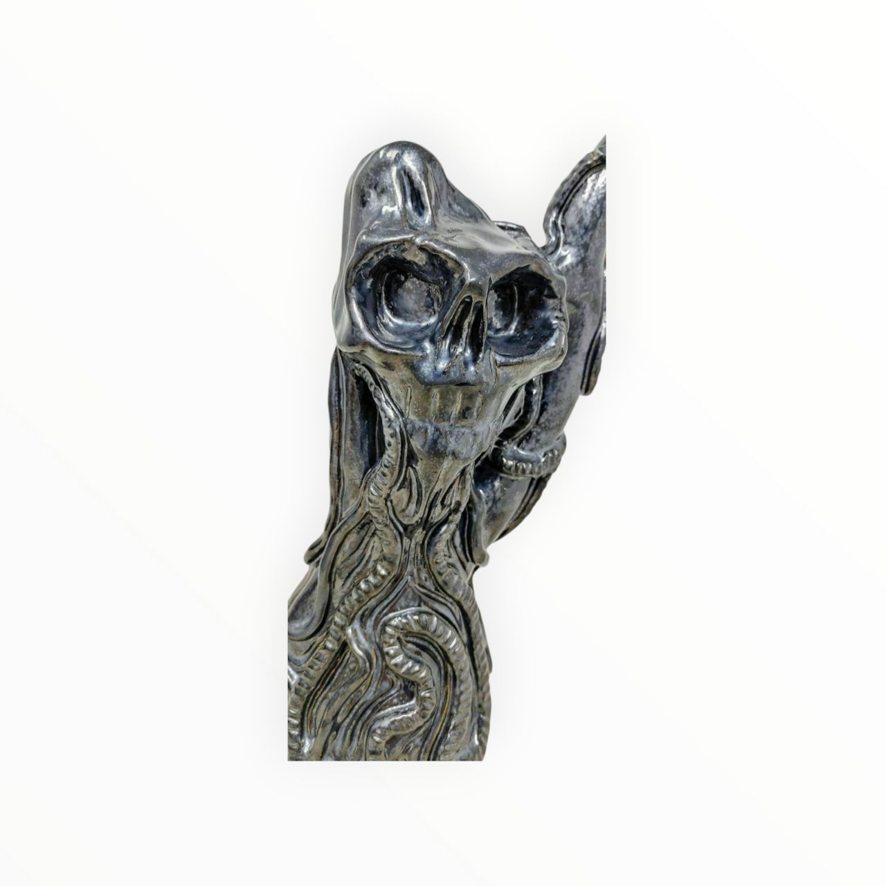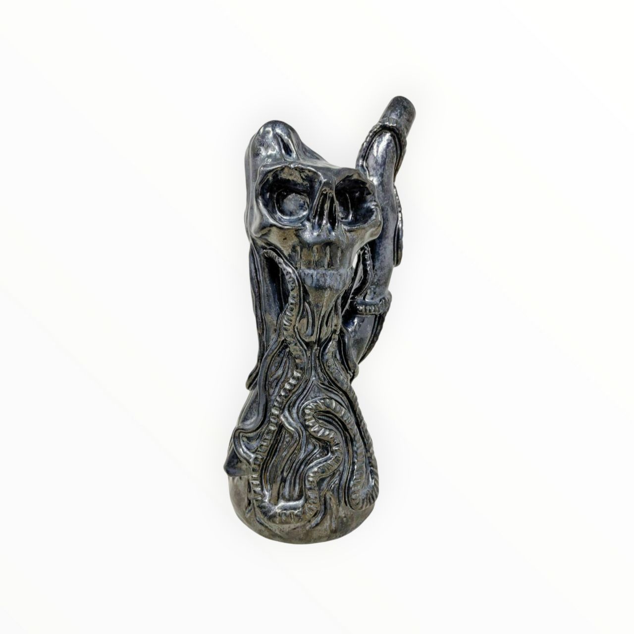 Mysterös, fremdartig, faszinierend: Zyron glänzt in Black Ice und erinnert an einen Alien-König. Kunstvoll glasiert, ein Totenkopf voller Stil, Kraft und Außergewöhnlichkeit – für Sammler, die das Unbekannte lieben.