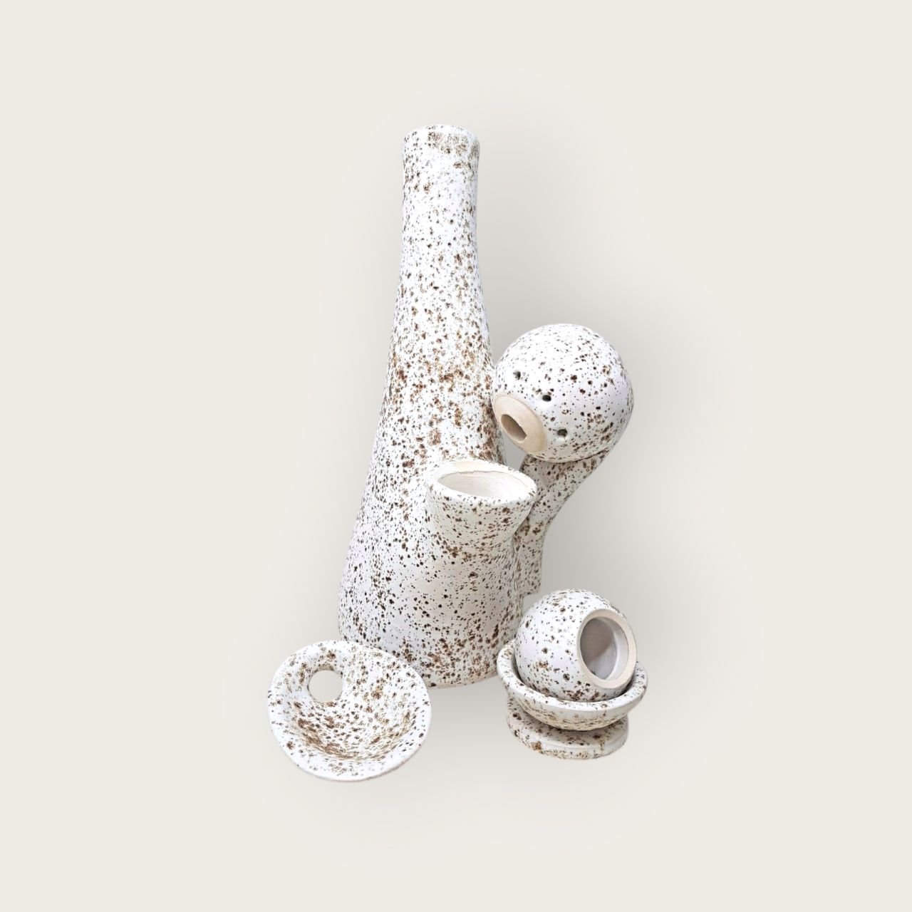 Im Keramik Set enthalten sind: Vase samt Kräuterkugel, Kräutereinfüllschale, Ball Rack und das Edelstahlsieb für die Kräuterkugel! Bitte beachte, dass unser Keramikset ohne das Elektroset und den Trafo verkauft wird. Diese können separat erworben werden, um dein FlavorMaster-Erlebnis zu vervollständigen. Investiere in Qualität, investiere in Handwerkskunst, investiere in FlavorMasters.