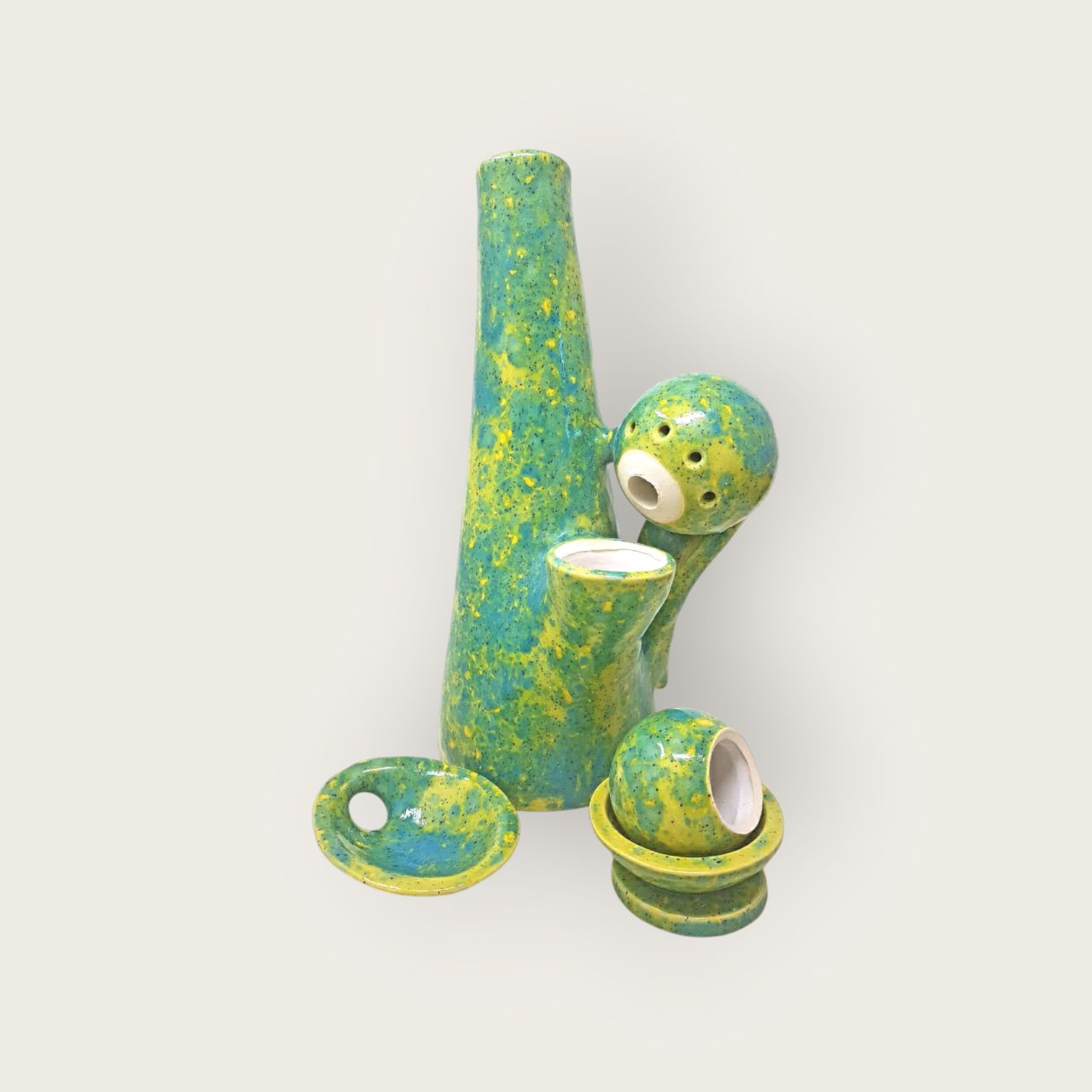Im Keramik Set enthalten sind: Vase samt Kräuterkugel, Kräutereinfüllschale, Ball Rack und das Edelstahlsieb für die Kräuterkugel! Bitte beachte, dass unser Keramikset ohne das Elektroset und den Trafo verkauft wird. Diese können separat erworben werden, um dein FlavorMaster-Erlebnis zu vervollständigen. Investiere in Qualität, investiere in Handwerkskunst, investiere in FlavorMasters.